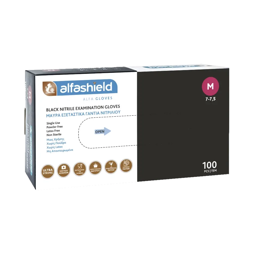 ALFASHIELD ΓΑΝΤΙΑ ΝΙΤΡΙΛΙΟΥ ΜΑΥΡΑ ΜΕΓΕΘΟΣ M MEDIUM – 100 ΤΕΜΑΧΙΑ