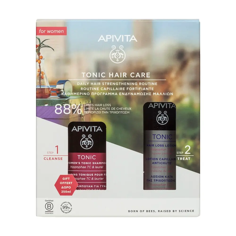 APIVITA WOMEN’S TONIC ΣΑΜΠΟΥΑΝ ΤΟΝΩΤΙΚΟ ΓΙΑ ΓΥΝΑΙΚΕΣ ΜΕ ΔΑΦΝΗ & ΙΠΠΟΦΑΕΣ 250ml + HAIR LOSS LOTION (250ml) ΠΑΚΕΤΟ ΠΡΟΣΦΟΡΑΣ