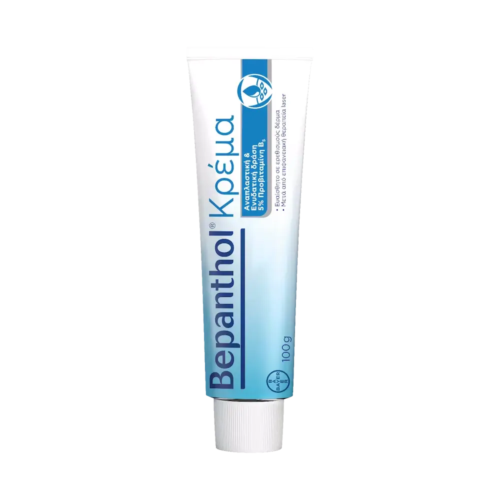 Κρέμα για το ξηρό και το ευαίσθητο σε ερεθισμούς δέρμα Η εγγυημένη φροντίδα Bepanthol περιέχει 5% προβιταμίνη Β5 (δεξπανθενόλη). H προβιταμίνη Β5 έχει διπλή δράση στο δέρμα: υποστηρίζει τη φυσική διαδικασία ανάπλασης του δέρματος και παράλληλα το ενυδατώνει αποτελεσματικά.