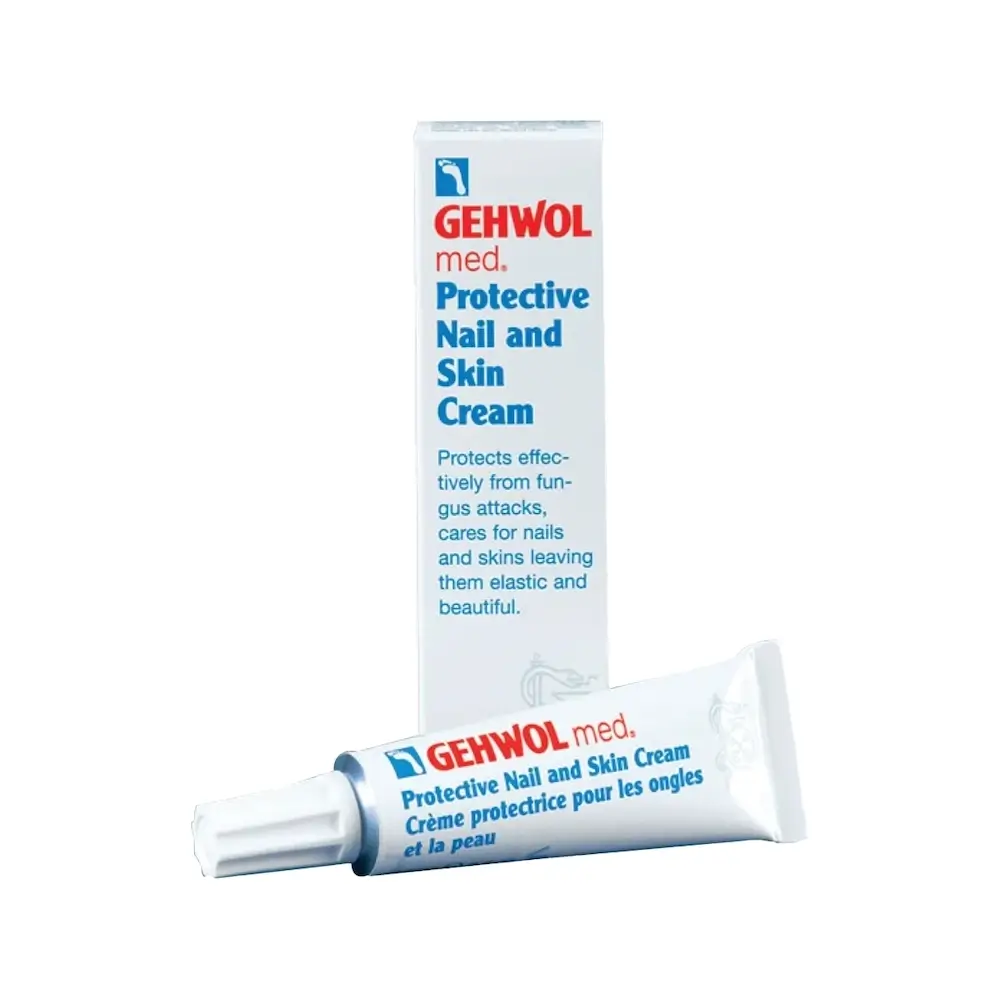 Η προστατευτική κρέμα νυχιών και δέρματος Gehwol med Protective Nail and Skin Cream εμποδίζει τη δημιουργία μυκητιασικών μολύνσεων, συμβάλλει στην ολοκληρωμένη φροντίδα νυχιών και δέρματος και χαρίζει ελαστικότητα στα εύθραυστα και σκληρά νύχια.