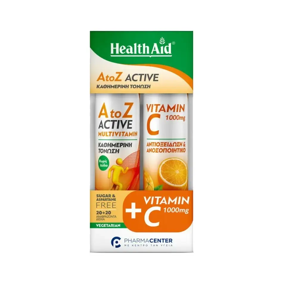 HEALTH AID A to Z Active Πολυβιταμίνες (20 αναβράζοντα δισκία) + Vitamin C 1000mg (20 αναβράζοντα δισκία) ΔΩΡΟ