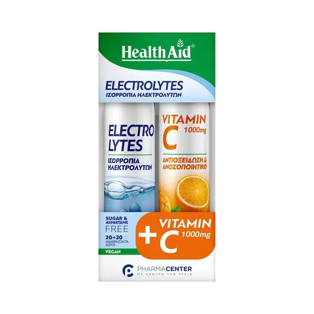 HEALTH AID Electrolytes (20 αναβράζοντα δισκία) + Vitamin C 1000mg (20 αναβρ.δισκία) 1+1 ΔΩΡΟ