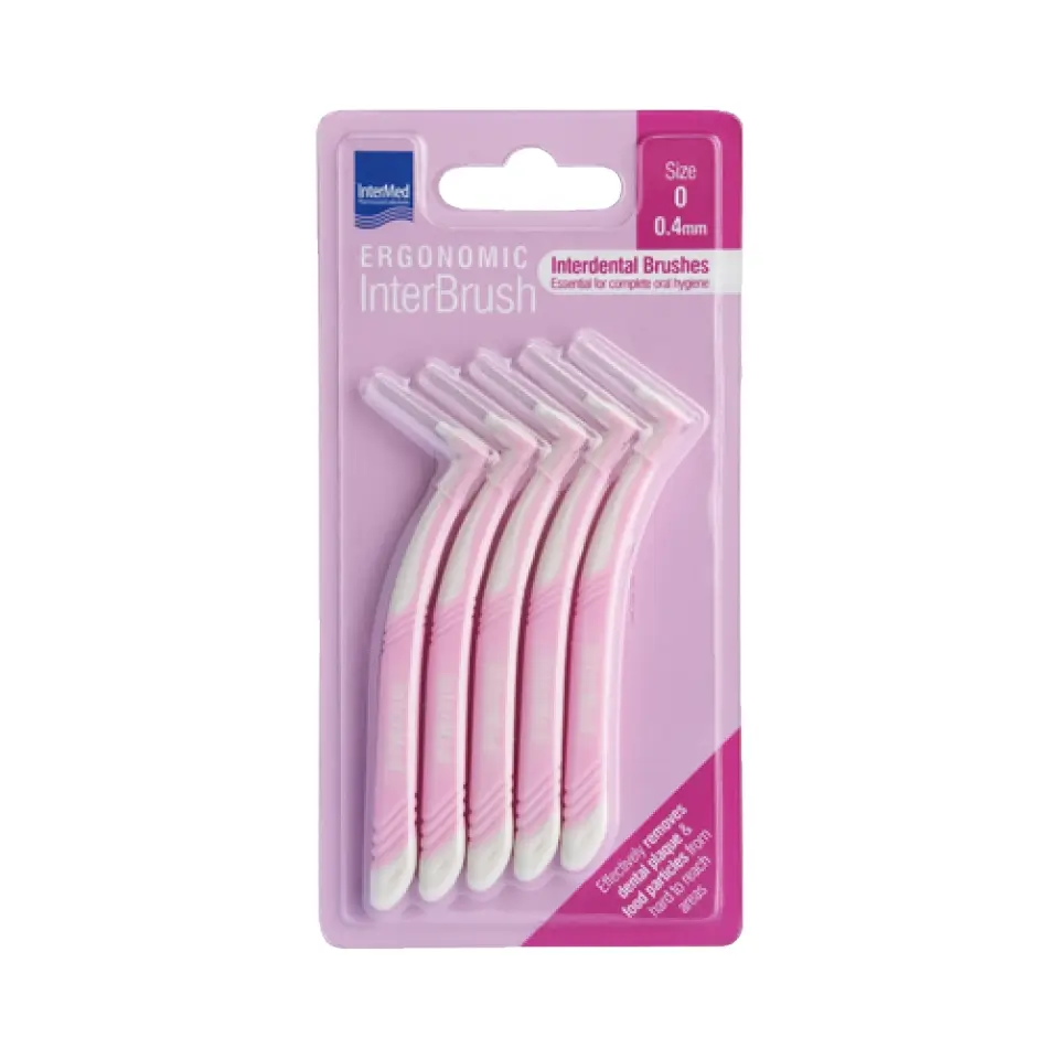 INTERMED ERGONOMIC INTERBRUSH ΜΕΣΟΔΟΝΤΙΑ ΒΟΥΡΤΣΑΚΙΑ ΡΟΖ 0.4mm SIZE 0 (5 ΤΕΜΑΧΙΑ)