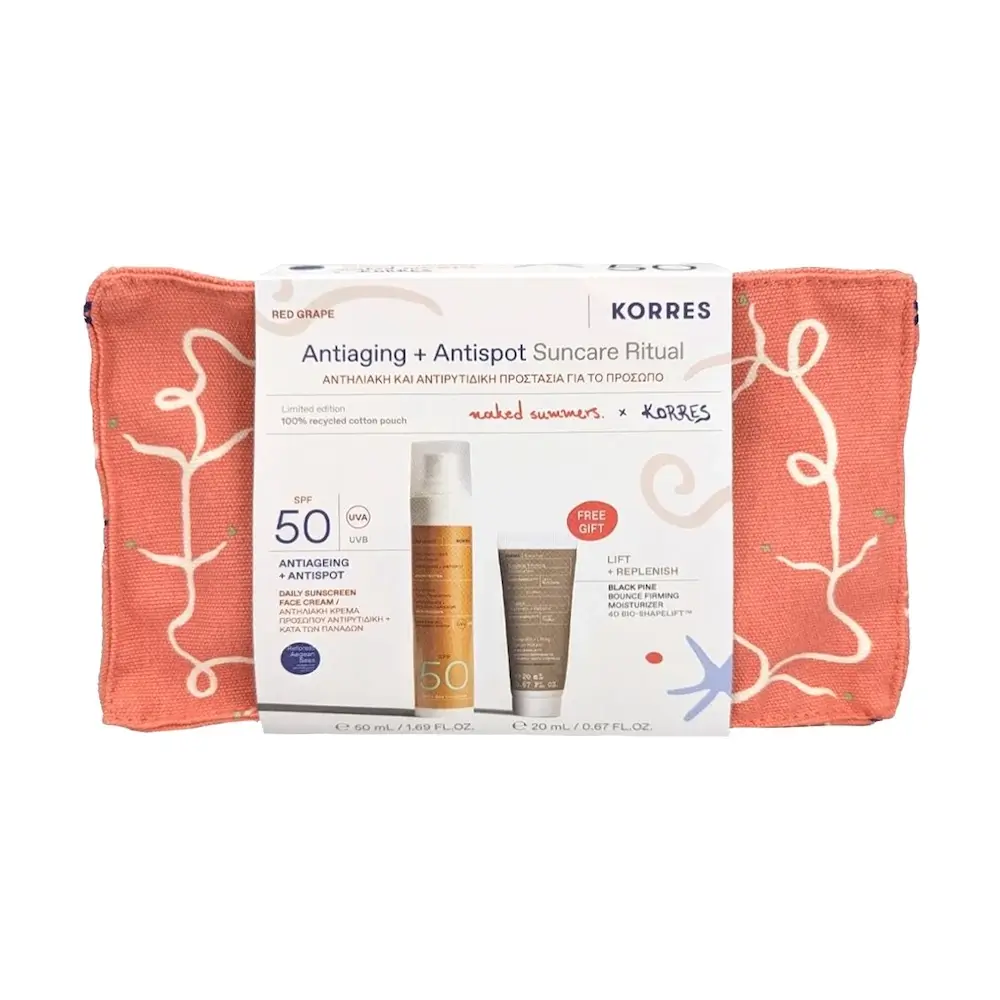 KORRES ΑΝΤΗΛΙΑΚΗ ΚΡΕΜΑ ΠΡΟΣΩΠΟΥ ΚΟΚΚΙΝΟ ΣΤΑΦΥΛΙ SPF50 (50ml) + ΚΡΕΜΑ ΠΡΟΣΩΠΟΥ BLACK PINE 4D (20ml) ΣΕ ΝΕΣΕΣΕΡ