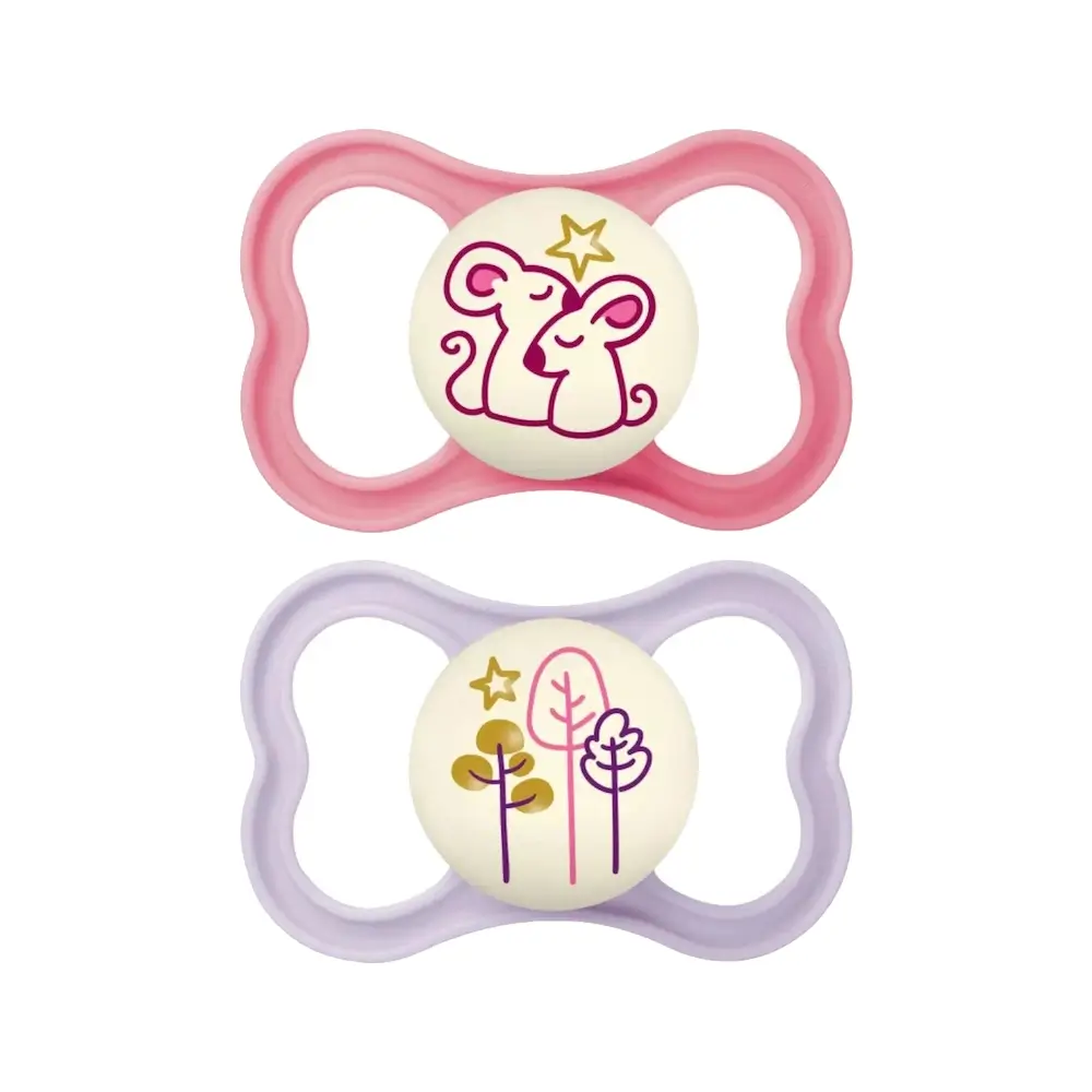 MAM Πιπίλες Σιλικόνης AIR NIGHT Girl 16+ (2 τεμάχια με θήκη)