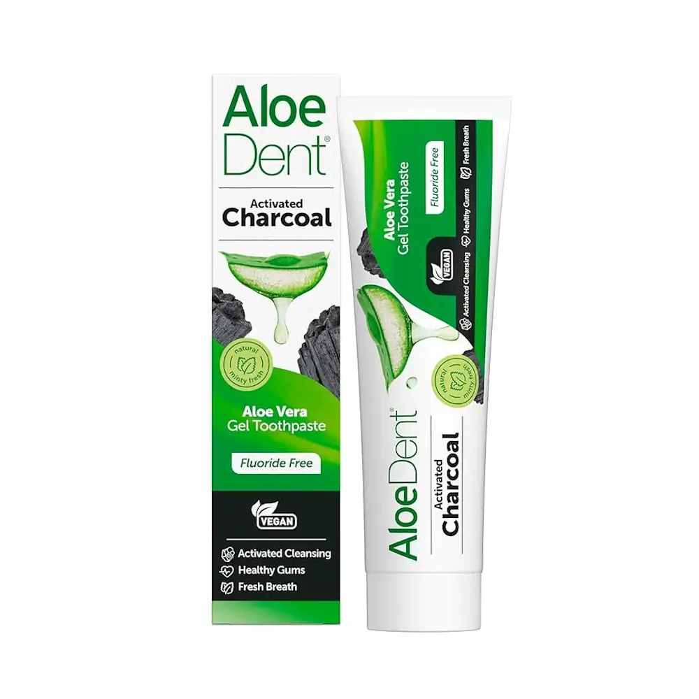 Η Aloe Dent Triple Action Charcoal της Optima αποτελεί μια οδοντόκρεμα με τριπλή δράση που έχει ως βάση την Αλόη Βέρα αντί για νερό.