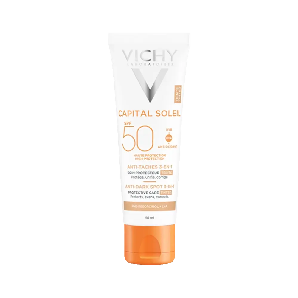 VICHY CAPITAL SOLEIL 3-σε-1 Αντιηλιακή Προσώπου SPF 50+ κατά των Κηλίδων με Χρώμα – 50ml